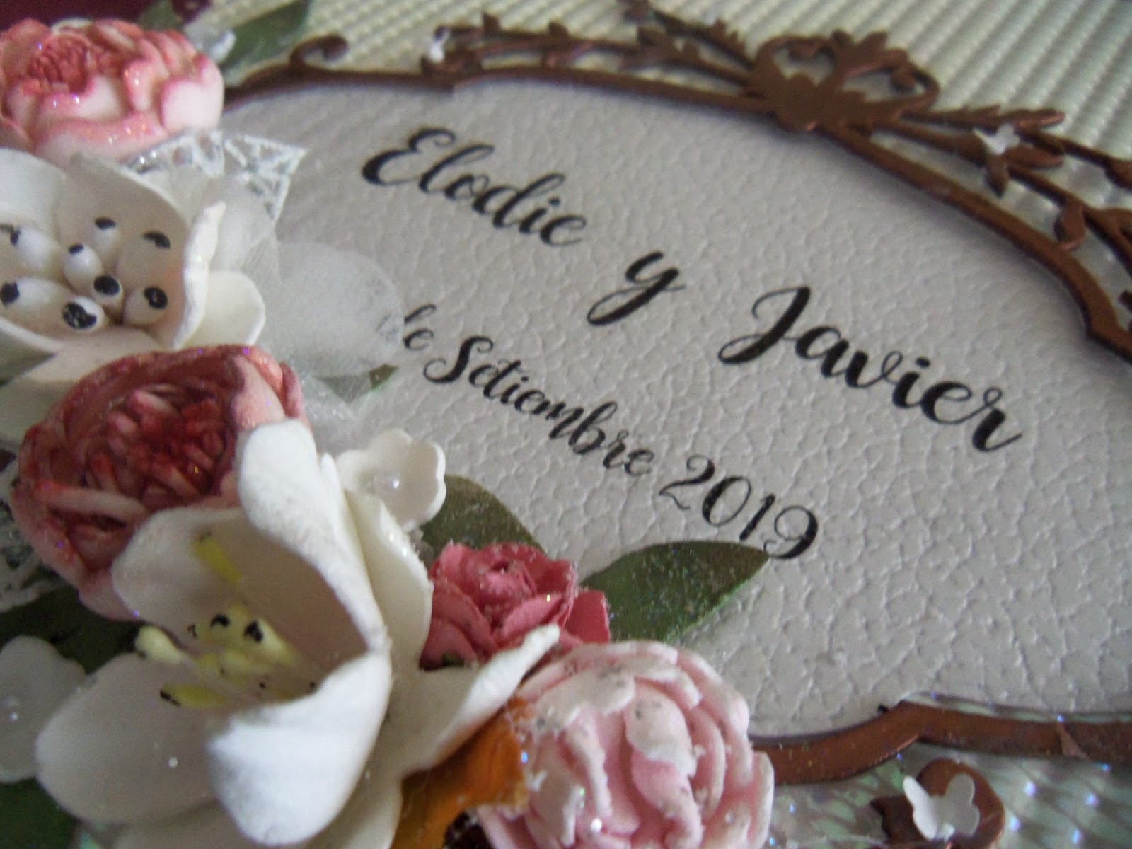 de fondo lleva un papel kraft con unas flores troqueladas que es